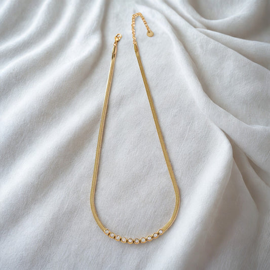 Collana Snake Lume | Girocollo Spina di Pesce Acciaio Inox Dorato con Punti Luce | Trendy, Anallergica, Waterproof