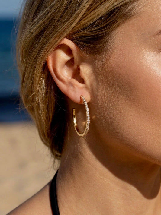 Orecchini Lumière Hoop in Acciaio Inossidabile Oro – Cerchi Donna con Zirconi Luminosi