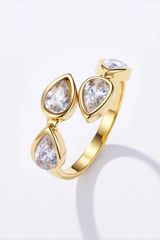 Anello Golden Drops con Pietre Taglio Goccia in Acciaio Inossidabile Oro – Regolabile Donna