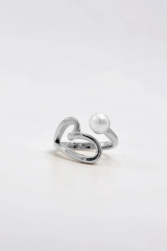 Anello Pearl Love Regolabile in Acciaio Inossidabile – Anello Donna con Cuore e Perla