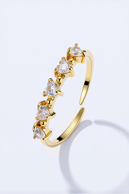 Anello Cuori Eternity con Pietre a Cuore in Acciaio Inossidabile Oro – Regolabile