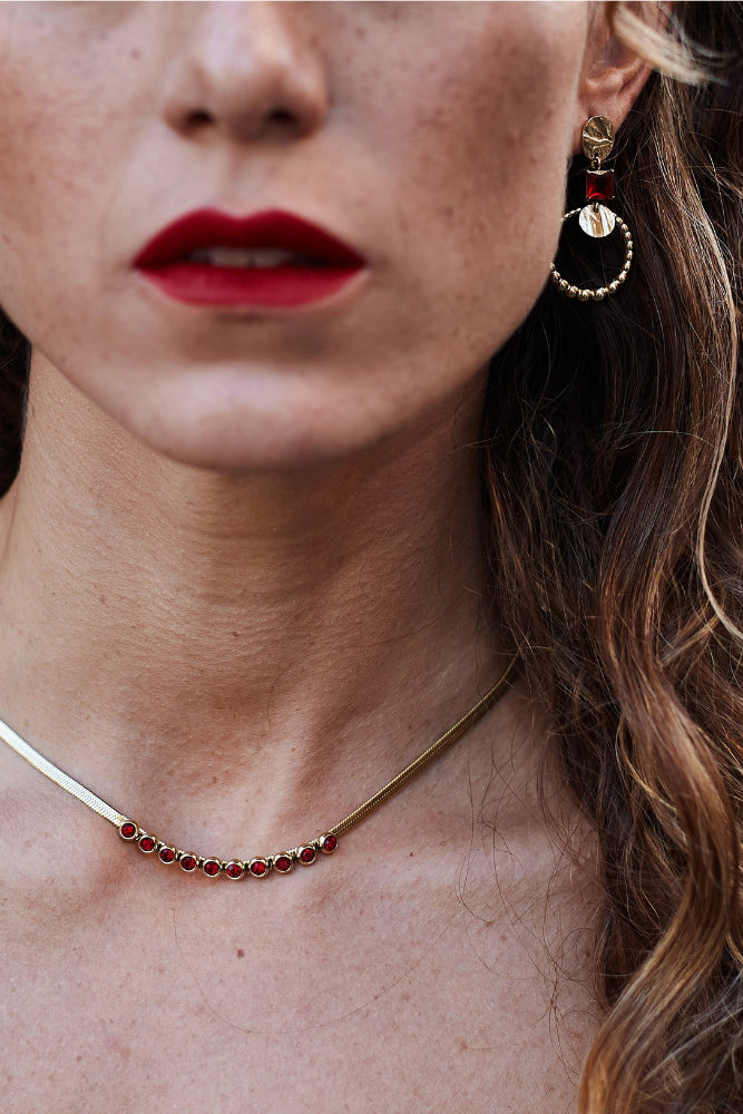 Fai risplendere il tuo look con la Collana Snake Lume, un gioiello che unisce l'iconica catena Snake (Spina di Pesce), simbolo di eleganza anni '90, con una moderna fila di punti luce scintillanti. La catena, liscia e flessibile, è realizzata in acciaio inossidabile dorato di alta qualità e si adagia perfettamente al collo come un girocollo.